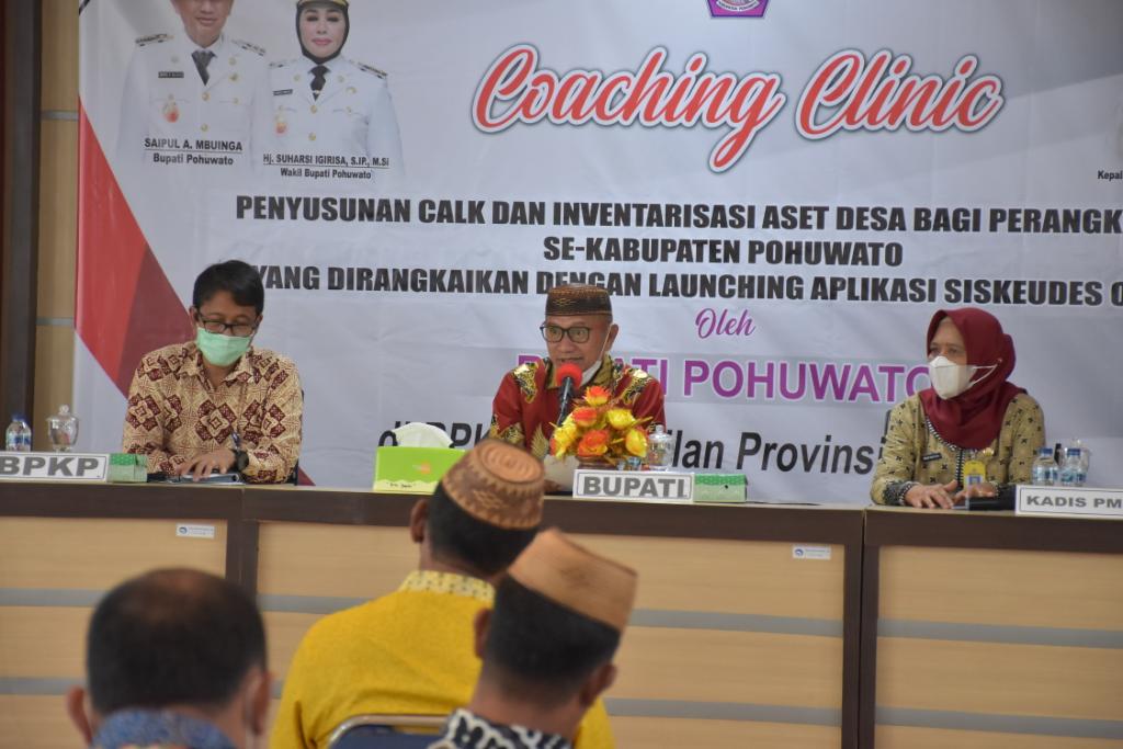 MARISA (RG) – Sebagai bentuk penguatan kapasitas aparat pemerintah desa dalam hal pengelolaan keuangan desa, maka Dinas Pemberdayaan Masyarakat Desa (PMD) menggelar coaching klinik penyusunan calk dan inventarisasi aset desa bagi aparat desa se Kabupaten Pohuwato, yang dirangkaikan dengan launcing aplikasi Siskeudes online, di aula Badan Pengawasan Keuangan dan Pembangunan (BPKP) perwakilan provinsi Gorontalo.