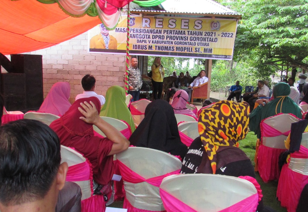 Kegiatan reses perseorangan yang digelar anggota tim dapil V kabupaten Gorut, Idrus Thomas Mopili, di desa Bulontio Timur kecamatan Sumalata. (foto: romi gogani)