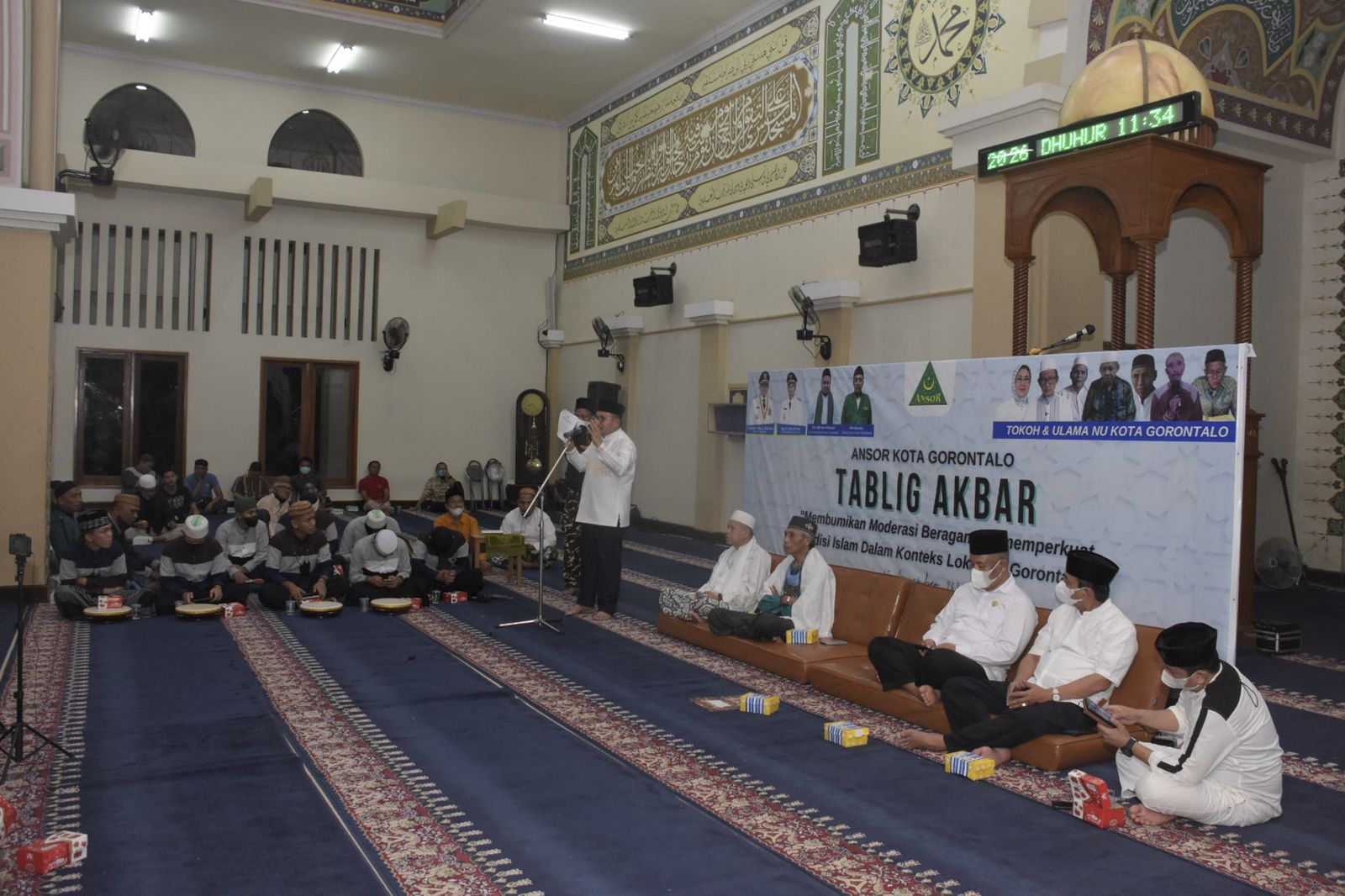 PEMKOT (RAGORO)- Walikota Gorontalo Marten A. Taha mengungkapkan moderasi beragama merupakan konsepsi yang dapat membangun sikap toleran dan rukun guna memperkuat persatuan dan kesatuan bangsa. “Gerakan ini dapat membumikan moderasi beragama menjadi suatu topik yang sangat penting terutama di negara kita, bukan karena adanya intoleransi, radikalisme ataupun terorisme. Tapi memang moderasi beragama adalah sebuah pilihan dalam rangka untuk menciptakan suatu kondisi masyarakat yang bersatu, “ujar Marten, pada saat memberikan sambutan kegiatan Tabligh Akbar, bertempat di Masjid Baiturrahim bersama Ansor se Kota Gorontalo, Senin 15/11/21) malam.