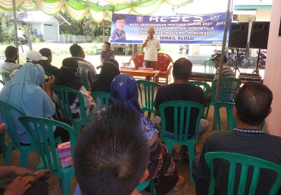 Masa reses yang dilakoni Ketua tim dapil VI Boalemo-Pohuwato, Ismail Alulu, dengan masyarakat di kecamatan Paguat. (foto: yanto mahmud)