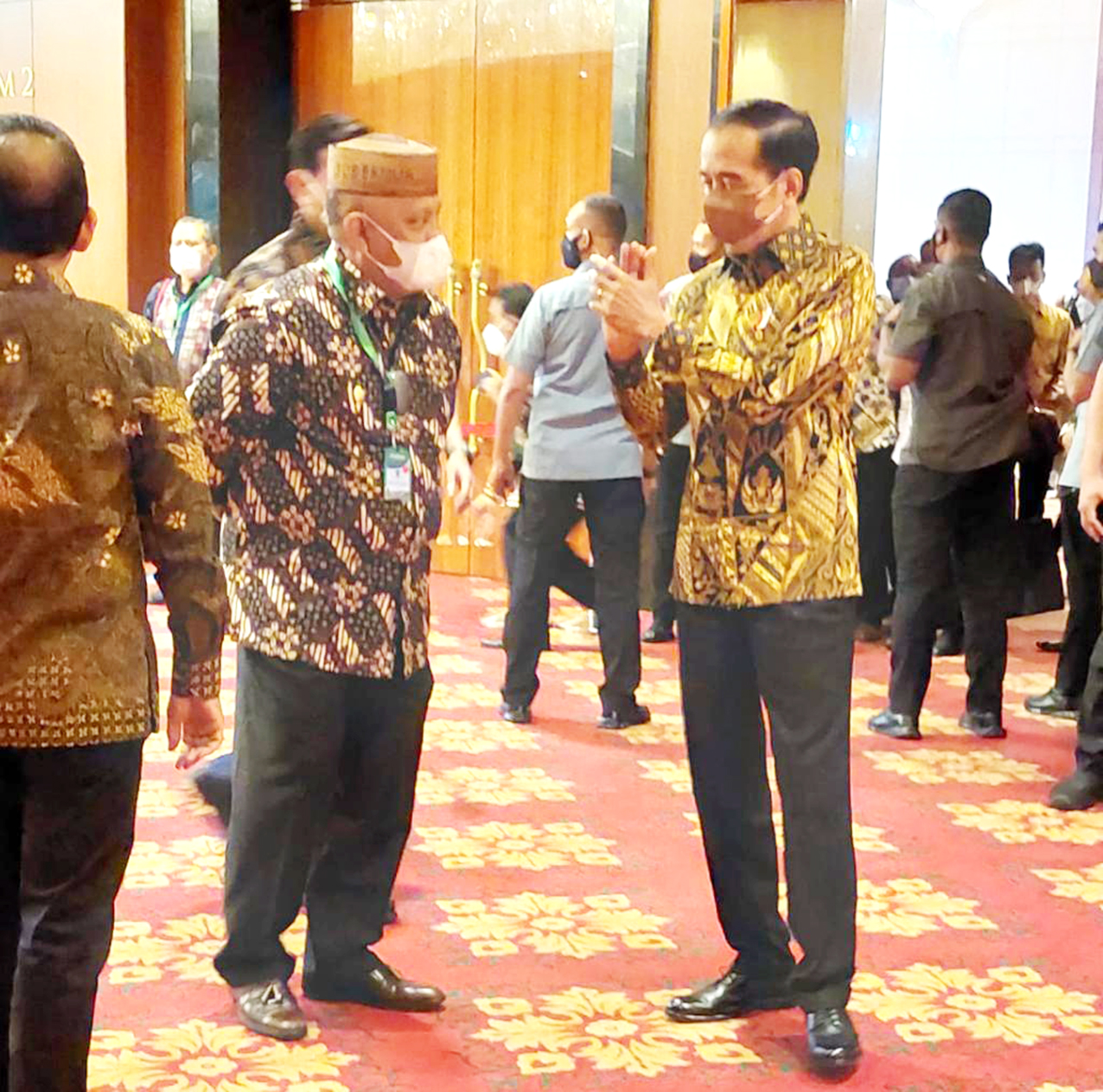 GUBERNUR Gorontalo Rusli Habibie saat berbincang bersama Presiden Joko Widodo disela-sela Rakornas Investasi di Jakarta, Rabu (24/11) kemarin. (foto/hms)