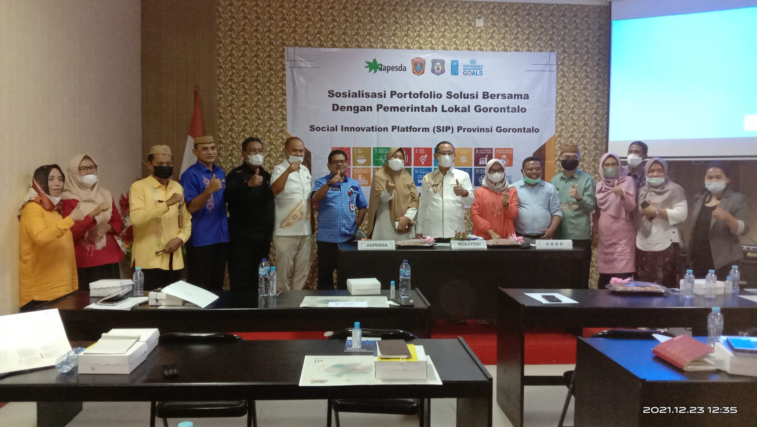 Sosialisasi portofolio solusi bersama dengan pemerintah lokal Gorontalo Utara dalam Social Innovation Platform (SIP) Propinsi Gorontalo terkait Jaringan Advokasi Pengelolaan Sumber Daya Alam (JAPESDA) Nomor 224/BPP-JPSDA/XII/2021. (Foto : 89_rg)