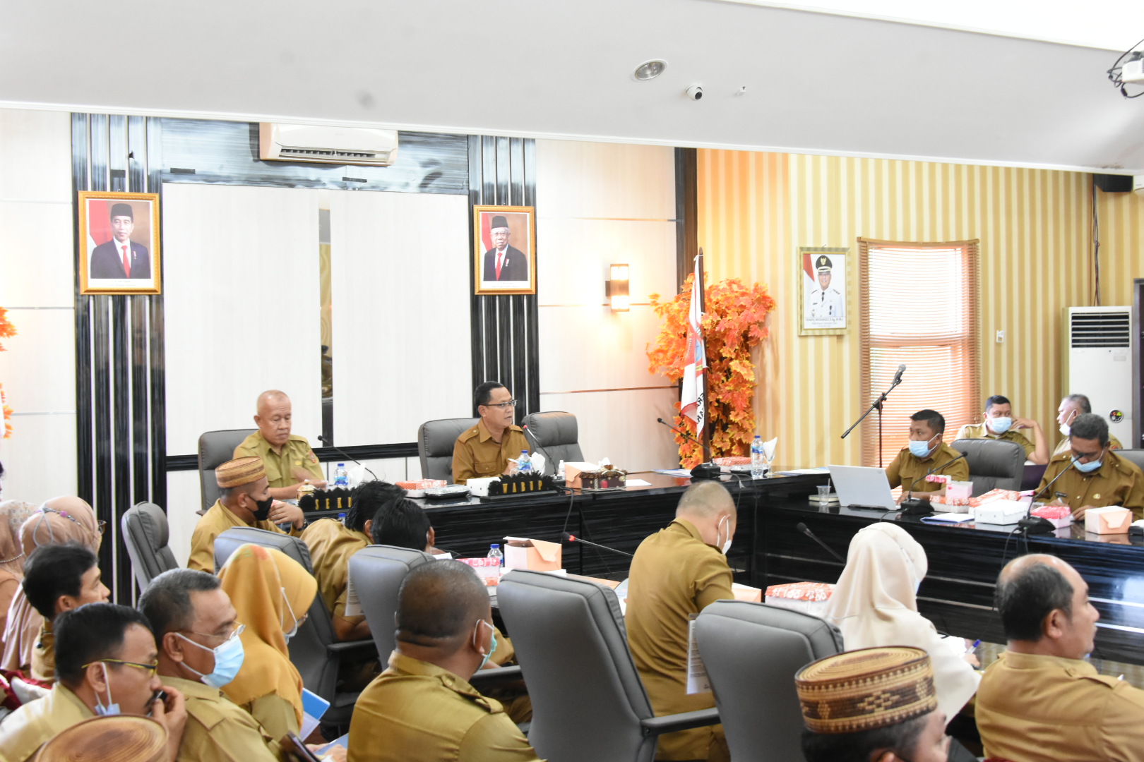 Plt Bupati Gorut, Thariq Modanggu saat memimpin rapat evaluasi dan koordinasi terhadap realisasi APBD Gorut tahun anggaran 2022, khususnya pada triwulan 1. (Foto : hmskominfo_gorut)
