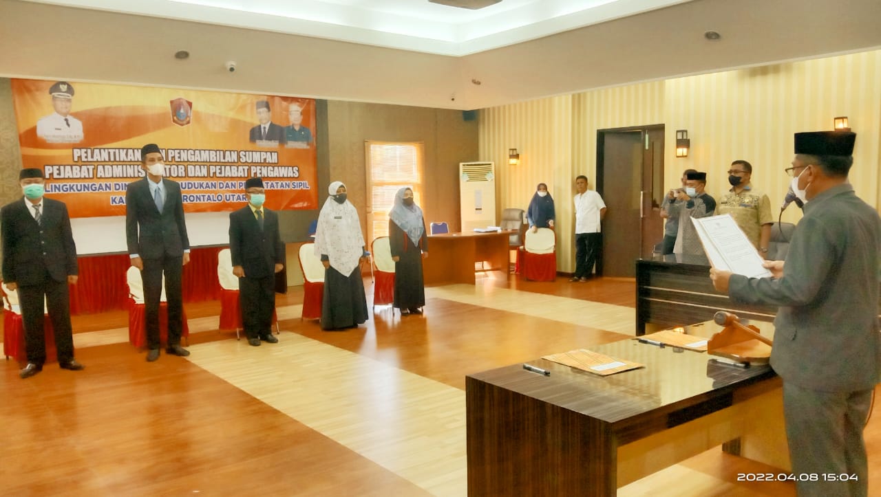 Kemudian jabatan Kepala Bidang Pelayanan Pencatatan Sipil diisi Siradji Mohune dan jabatan Kepala Bidang Pengelolaan Informasi Administrasi Kependudukan dan Pemanfaatan Data diisi Adriansyah Abas.