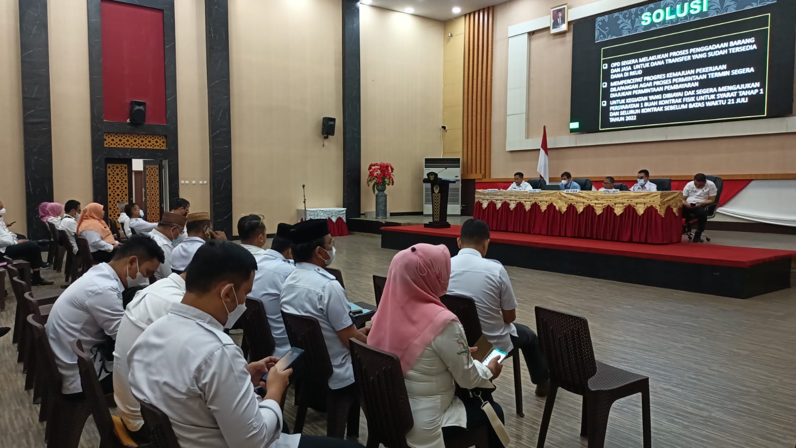 “Perlu saya ingatkan bahwa, progres capaian realisasi yang dilaksanakan sudah memasuki triwulan II. Artinya, posisi triwulan I, harusnya sudah pada progres 25 persen baik fisik maupun keuangan. “ujar Sekretaris Daerah Kota Gorontalo Ismail Madjid dalam sambutannya. Terkait dengan percepatan realisasi anggaran untuk PEN dan DAK, kata Ismail, jika dilihat dari taget dan realisasi yang ada, banyak hal yang masih realisasinya dibawah. Olehnya, jika proses tahapan tidak sesuai dengan target, jadwal waktu dan sebagainya, ini konsekuensinya kata Ismail, jika tidak terproses akan tidak menjadi beban didalam APD. Akan tetapi, secara totalitas itu akan merugikan daerah. Dikarenakan, pasti anggarannya tidak bisa dimanfaatkan. “Harapan saya, dengan dilaksanakannya rakorev triwulan satu ini bisa dapat menjadi satu motivasi bagi pimpinan OPD di Lingkungan Pemerintah Kota Gorontalo dalam hal mengevaluasi kinerja KPA dan PPTK secara berkala dengan menggunakan aplikasi E-monep, sehingga progres pencapaian realisasi di Kota Gorontalo ditriwulan kedua mengalami kenaikan dibandingkan tahun sebelumnya, “tutup Ismail.(lev).