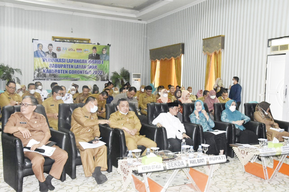 KABGOR – Bupati Gorontalo Nelson Pomalingo mengikuti Verifikasi Lapangan Hybrid (VLH) Kabupaten/Kota Layak Anak (KLA) yang digelar Kementerian Pemberdayaan Perempuan dan Perlindungan Anak (Kemen PPPA) dengan Pemerintah Kabupaten Gorontalo, Senin (6/6).