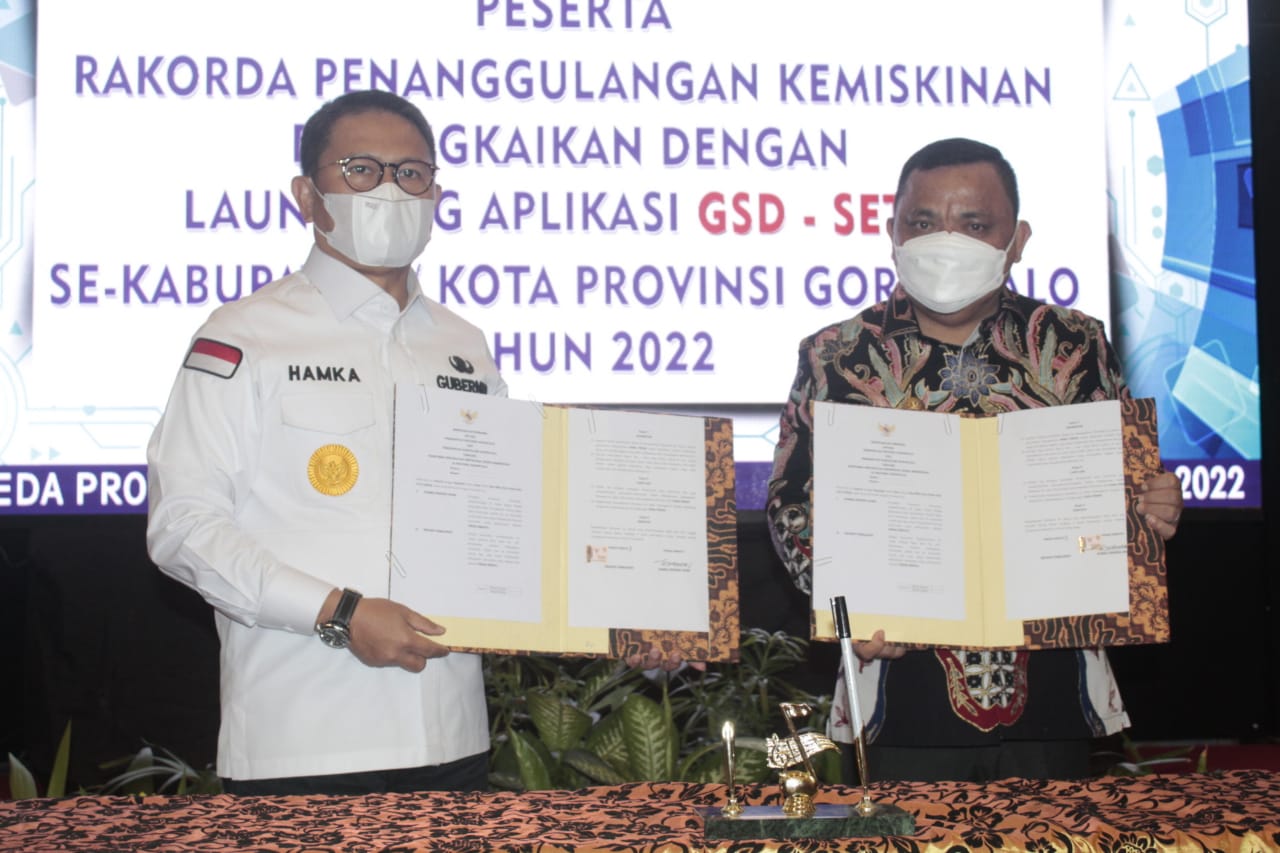 GORONTALO (RAGORO) – Pemerintah Kabupaten Gorontalo menjadi penyumbang terbesar menurunkan angka kemiskinan di Provinsi Gorontalo. Dalam acara penandatanganan nota kesepakatan antara Pemerintah Provinsi Gorontalo dan Pemerintah Kabupaten Gorontalo, Jum’at (10/6). Wakil Bupati, Hendra Hemeto mengatakan bahwa ini menjadi tugas dan tanggung jawab bersama. “ini menjadi tugas dan tanggung jawab kita bersama maka ini saya sampaikan bahwa kemiskinan ini bukan hanya sebagai tugas daripada pemerintah kabupaten tapi tugas kita bersama,” ujarnya. Hendra menambahkan, bahwa penurunan angka kemiskinan disebabkan beberapa faktor, diantaranya, dengan jumlah penduduk terbesar di Provinsi, Pemkab Gorontalo selalu konsisten dengan penurunan angka kemiskinan. Terbukti, dengan data Badan Pusat Statistik angka kemiskinan di tahun 2016 sebesar 78,36 (ribu jiwa) turun menjadi 67,21 (ribu jiwa) di tahun 2021.