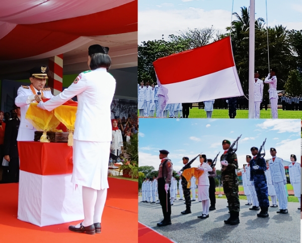 KABGOR – Bupati Gorontalo Prof. Nelson Pomalingo memimpin upacara pengibaran sang merah putih pada upacara peringatan HUT Proklamasi RI, ke-79, Sabtu (17/08/24).
