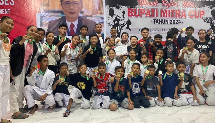 GORONTALO UTARA (RGNEWS.COM) – 5 dari 6 pelajar binaan Bandung Karate Club Kodim 1314 Gorontalo Utara berhasil mengharumkan nama Provinsi Gorontalo, khususnya Gorontalo Utara pada open turnamen karate Bupati Mitra Cup bertajuk Ultimate Fighter Mitra Cup di GOR Rimba Lamet Ratahan, Kabupaten Minahasa Tenggara (Mitra), Sulawesi Utara, 25-27 Oktober 2024.