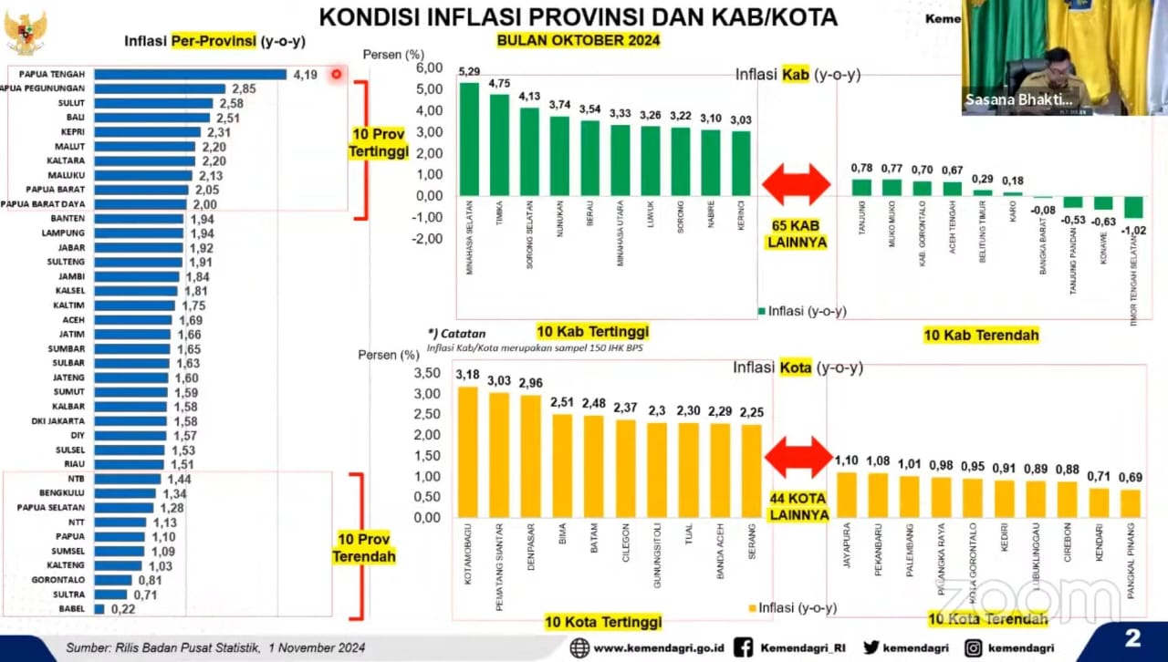 Keduanya juga menjadi kabupaten dan kota terendah inflasi secara nasional untuk bulan Oktober 2024.****
