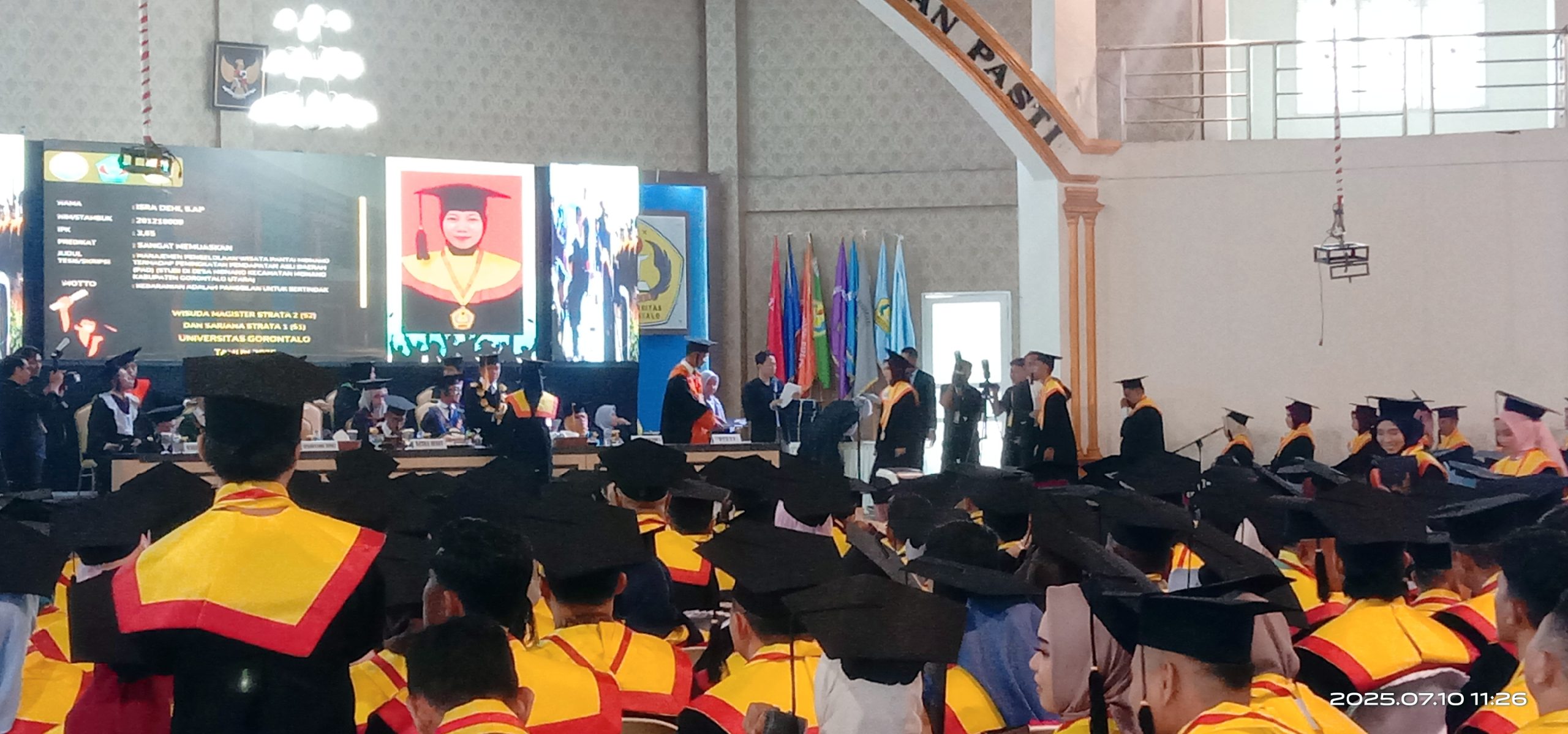 Wisuda digelar melalui rapat senat terbuka yang dilaksanakan di Gedung Prof Rustam Hs Akili Convention Center (RACC), Kamis (10/7).