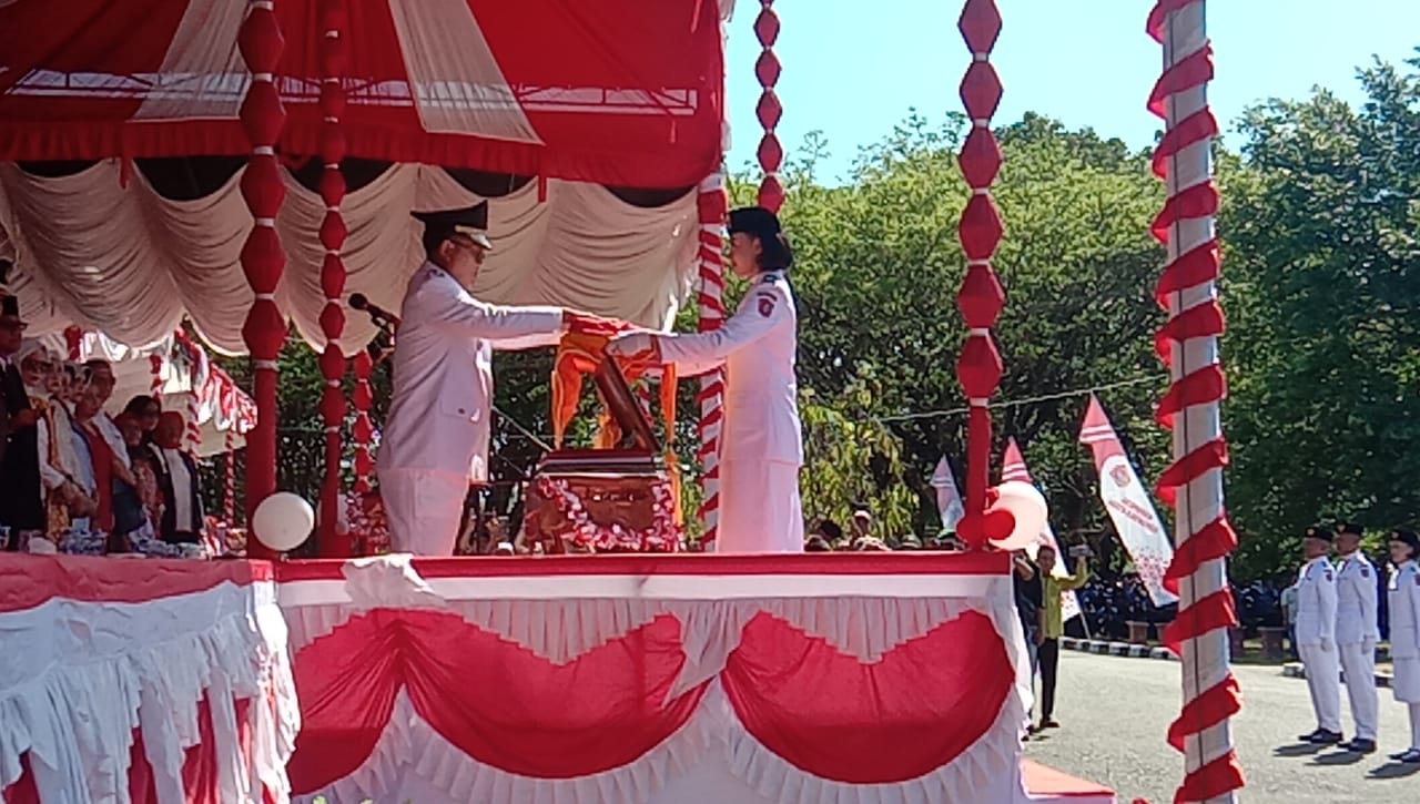 Upacara digelar di halaman Kantor Bupati, Minggu (17/8/2025).