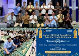 KABGOR – Dalam rangka mempererat silaturahmi di bulan suci Ramadan, Bank Rakyat Indonesia Cabang Limboto mengadakan kegiatan buka puasa bersama yang dirangkaikan dengan halal bihalal antara manajemen dan para pekerja di lingkungan BRI Cabang Limboto. Kegiatan tersebut dilaksanakan di Banking Hall BRI Cabang Limboto, Jumat (13/03/26).