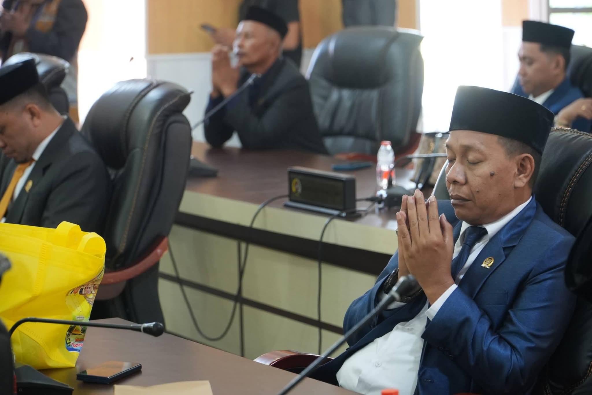 Nampak Anggota DPRD Kabupaten Gorontalo Utara dari Fraksi Partai Nasdem saat memanjatkan doa di akhir sidang paripurna istimewa dalam rangka memperingati HUT Kabupaten Gorontalo Utara ke- 19 tahun. (Foto : istimewa_dokumenfbhendranurdin)